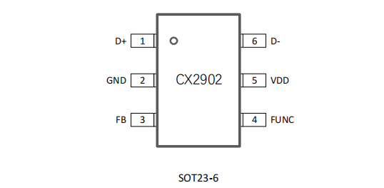在某些应用场合,外部控制器可以通过 FUNC 引脚关闭 芯片的快充输出功能,此时芯片只输出 5v 电压。关闭和打开 芯片 的快充功能是可以随时进行的,不需要重新启动 芯片。 芯片的静态电流<96uA,工作电流依赖于协议,范围:80uA~136uA,适合低功耗场合应用,比如移动电源。