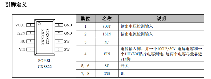 CX8822具备高性能的负载响应以及输入电压响应能力,同时精确的恒压和恒流控制环路实现极小的负载调整率和线性