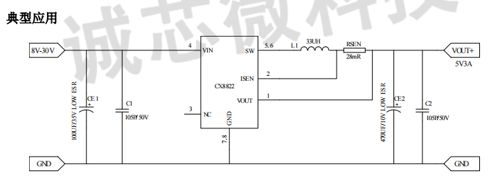 CX8822是一款输入耐压可达 36V,并且能够实现精确恒压以及恒流的降压型 DC-DC 转换器