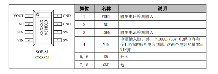 CX8824具备高性能的负载响应以及输入电压响应能力,同时精确的恒压和恒流控制环路实现极小的负载调整率和