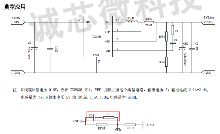 CX8835无需外部补偿,可以依靠自身内置稳定环路实现恒流以及恒压控制,同时具备线缆压降补偿功能